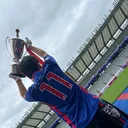 ゴール裏でドラクエのゲーフラを掲げてます