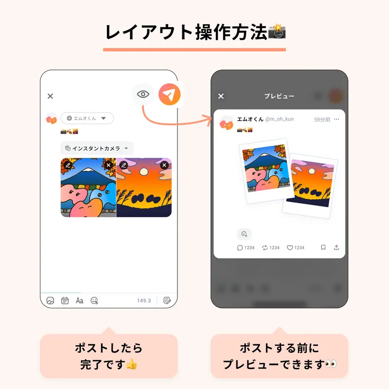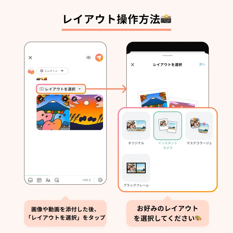 写真・動画を投稿する際に、レイアウトをカスタマイズできます📸