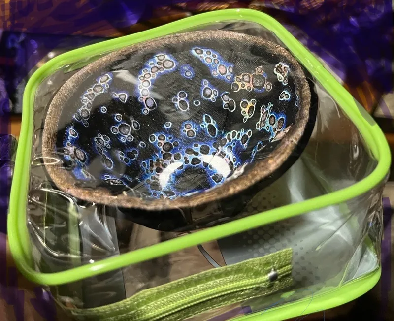 曜変天目茶碗のぬいぐるみをキャンドゥで購入したビニールポーチ山手線に入れたらピッタリだったのでそのまま飾ってる。