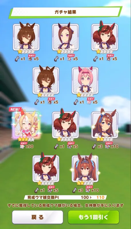 #ウマ娘 、どうにかパンドラ引けた。(^-^;今年の #メイセイオペラ杯 が終了したので、だいぶモチベも落ちていますが、カワカミ、スイーピー絡みじゃ引かざるを得ない。w#ゲームウマ娘 #フサイチパンドラ