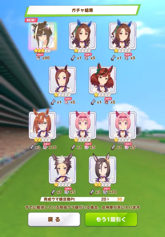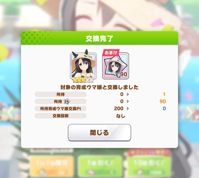 #ウマ娘 、水着シュヴァルは早めに引けた。(^-^;が、調子に乗って水着クラウンも狙い、結局天井まで引く事になったので、なんかトータルでは負けた気分。w#ゲームウマ娘 #シュヴァルグラン #サトノクラウン